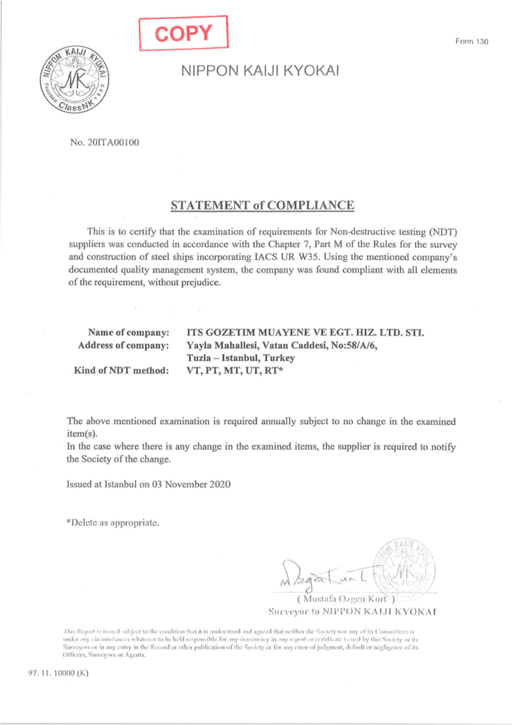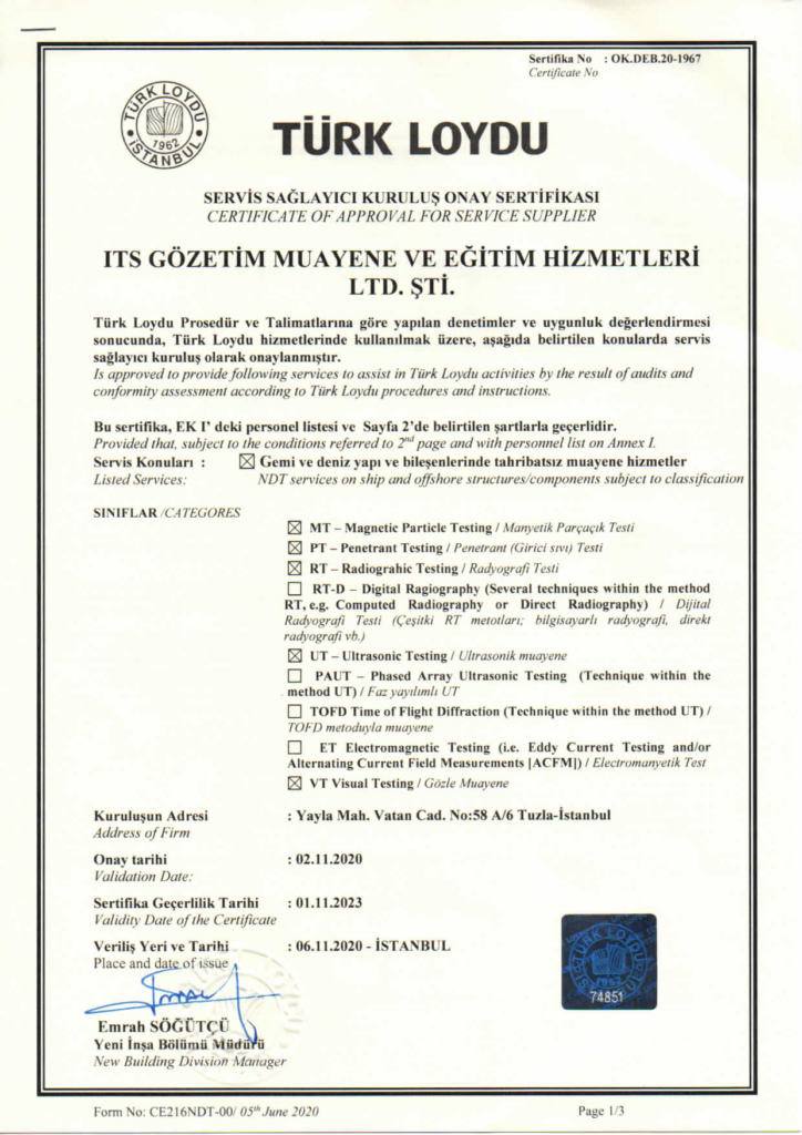 Yetkilendirildiğimiz Class kuruluşları ve sahip olduğumuz belgeler.